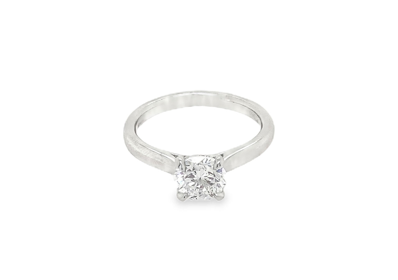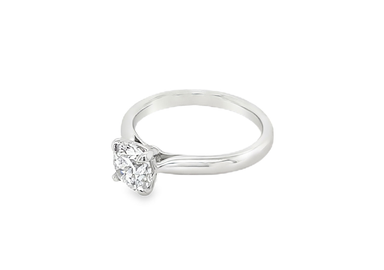 Platinum soliatire ring set with a 1.08ct round brilliant lab grown diamond. Colour D / Clarity VVS2.