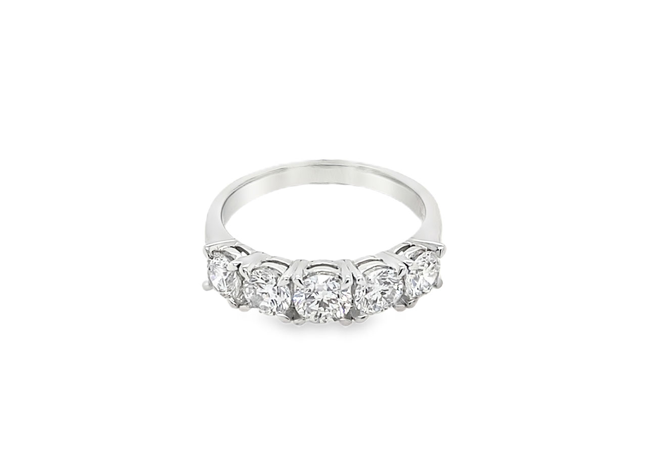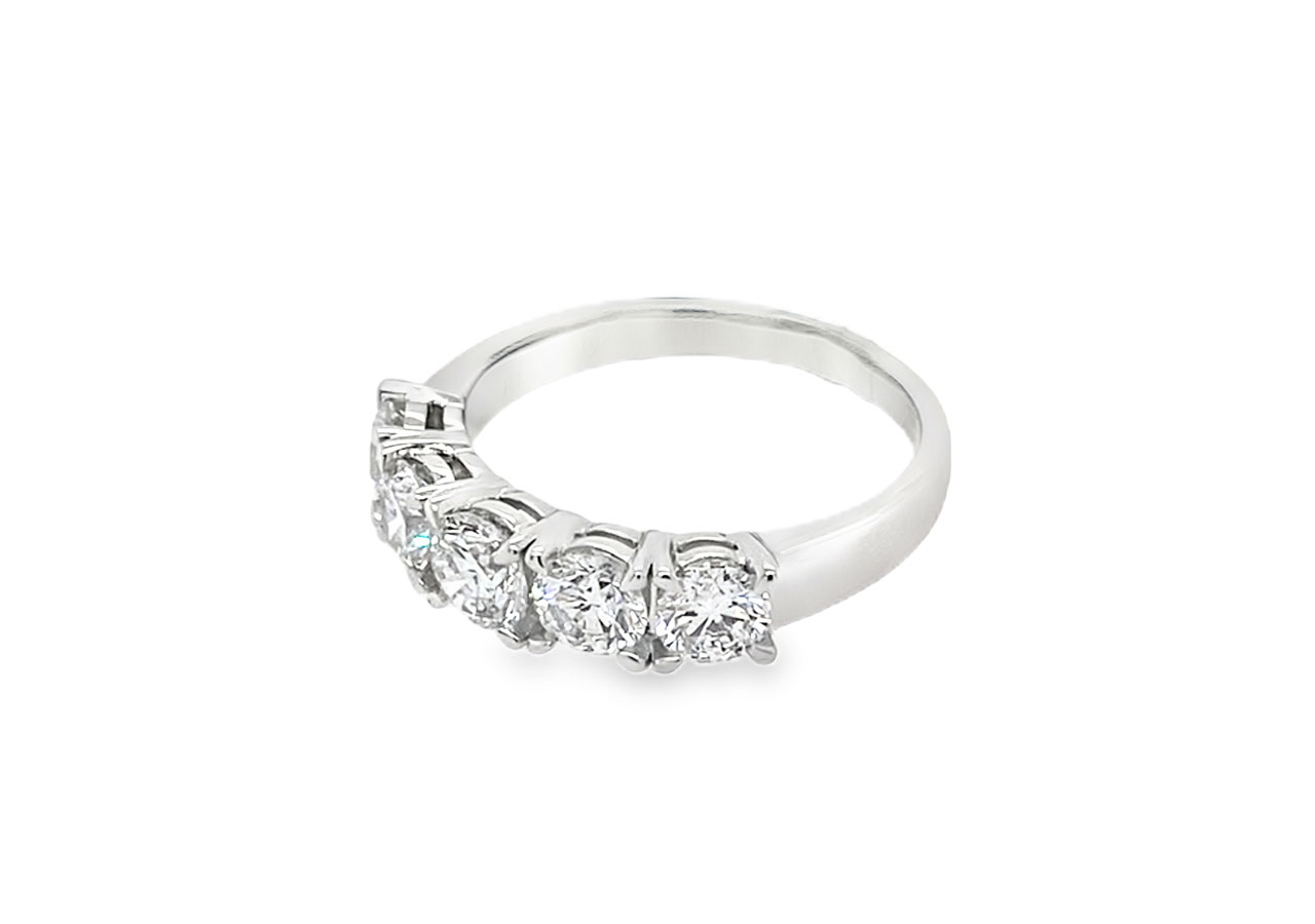 Platinum 5 stone ring set with 5 round brilliant lab grown diamonds. Total carat weight 1.50ct.