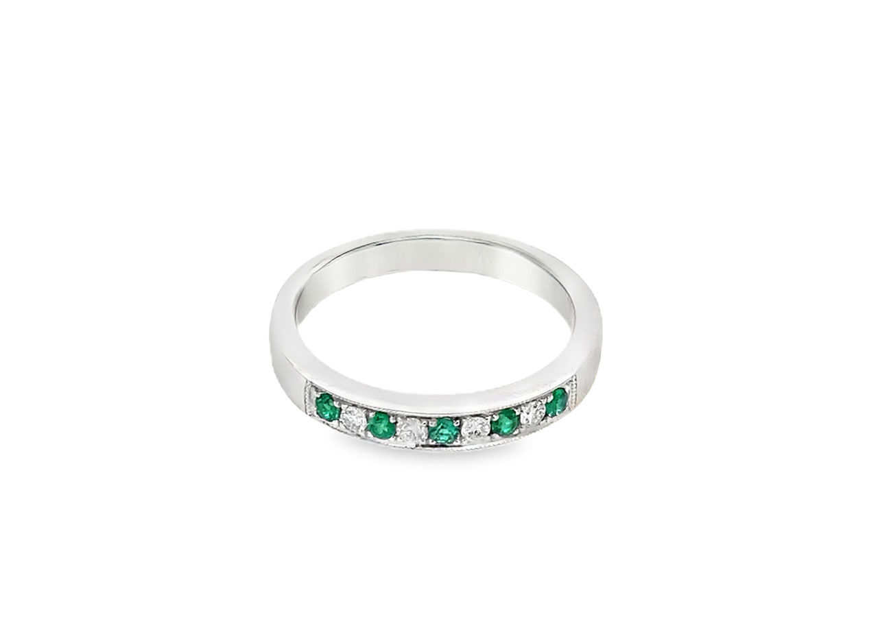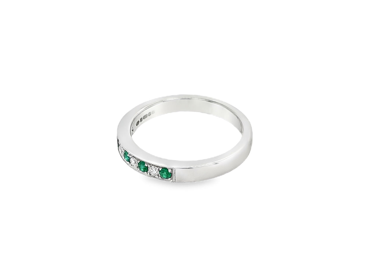18ct white gold emerald and diamond eternity ring.