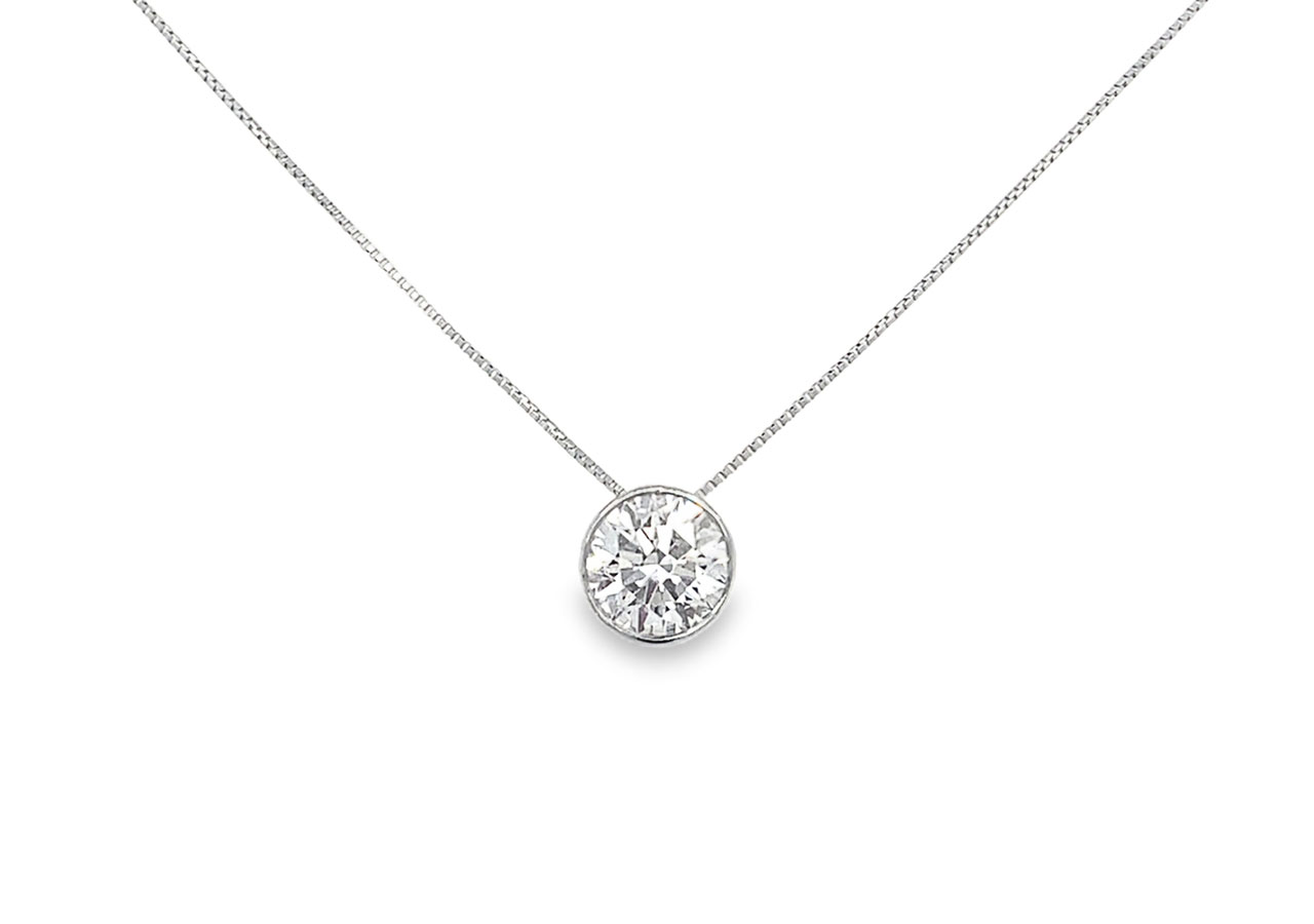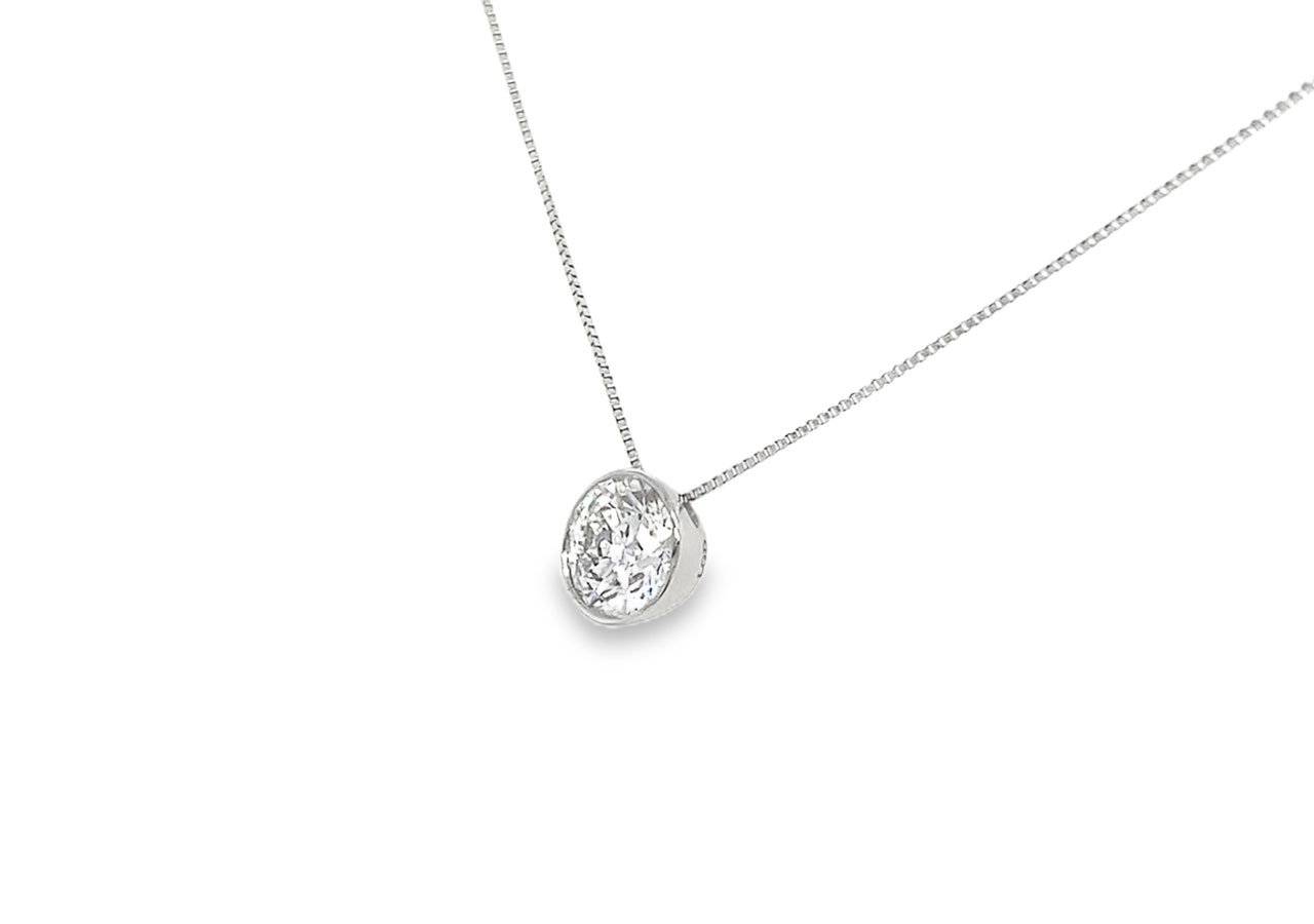 Platinum chain with a 1.08ct round brilliant lab grown diamond set onto the chain for a floating affect. Chain is 18 inches long.