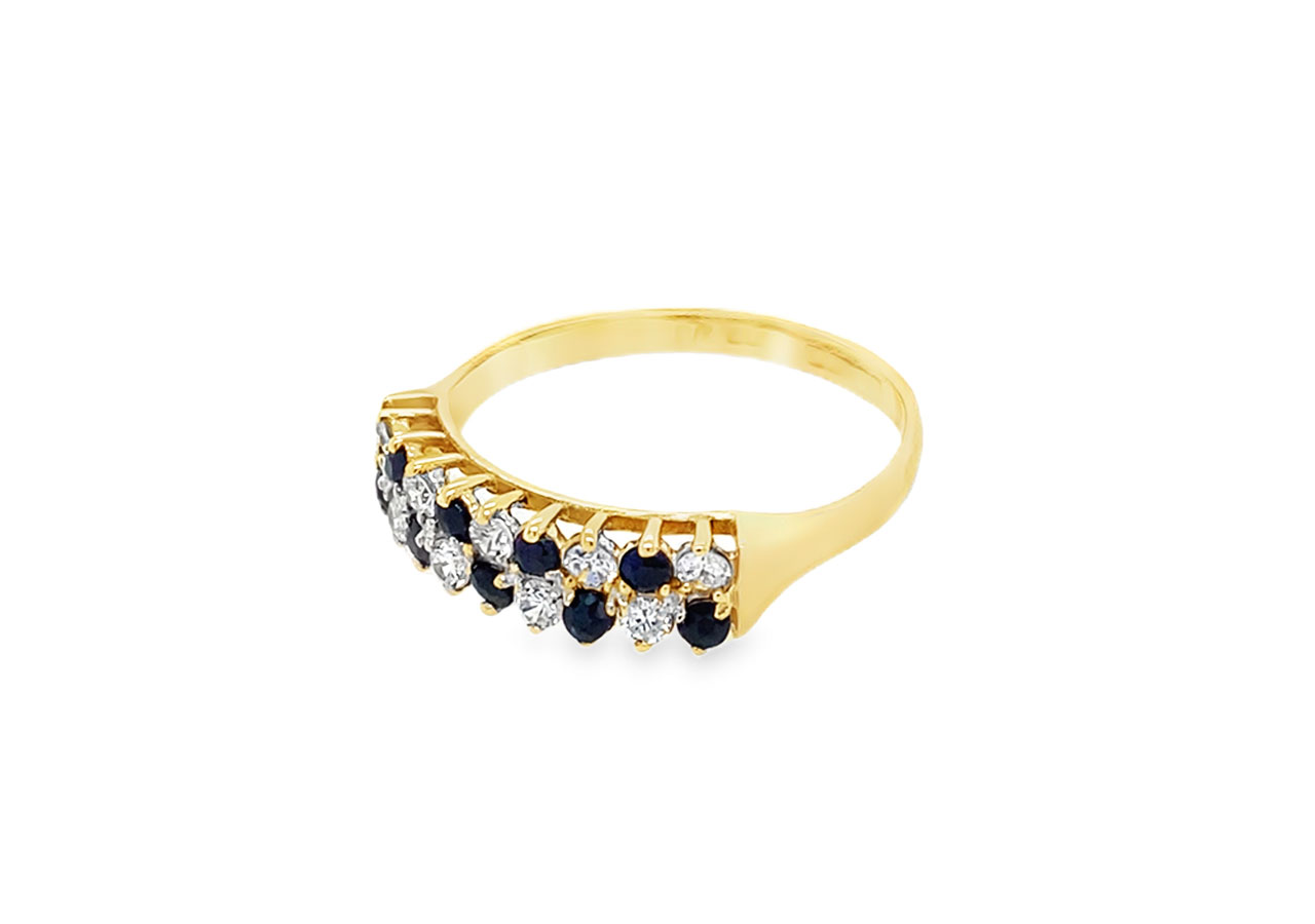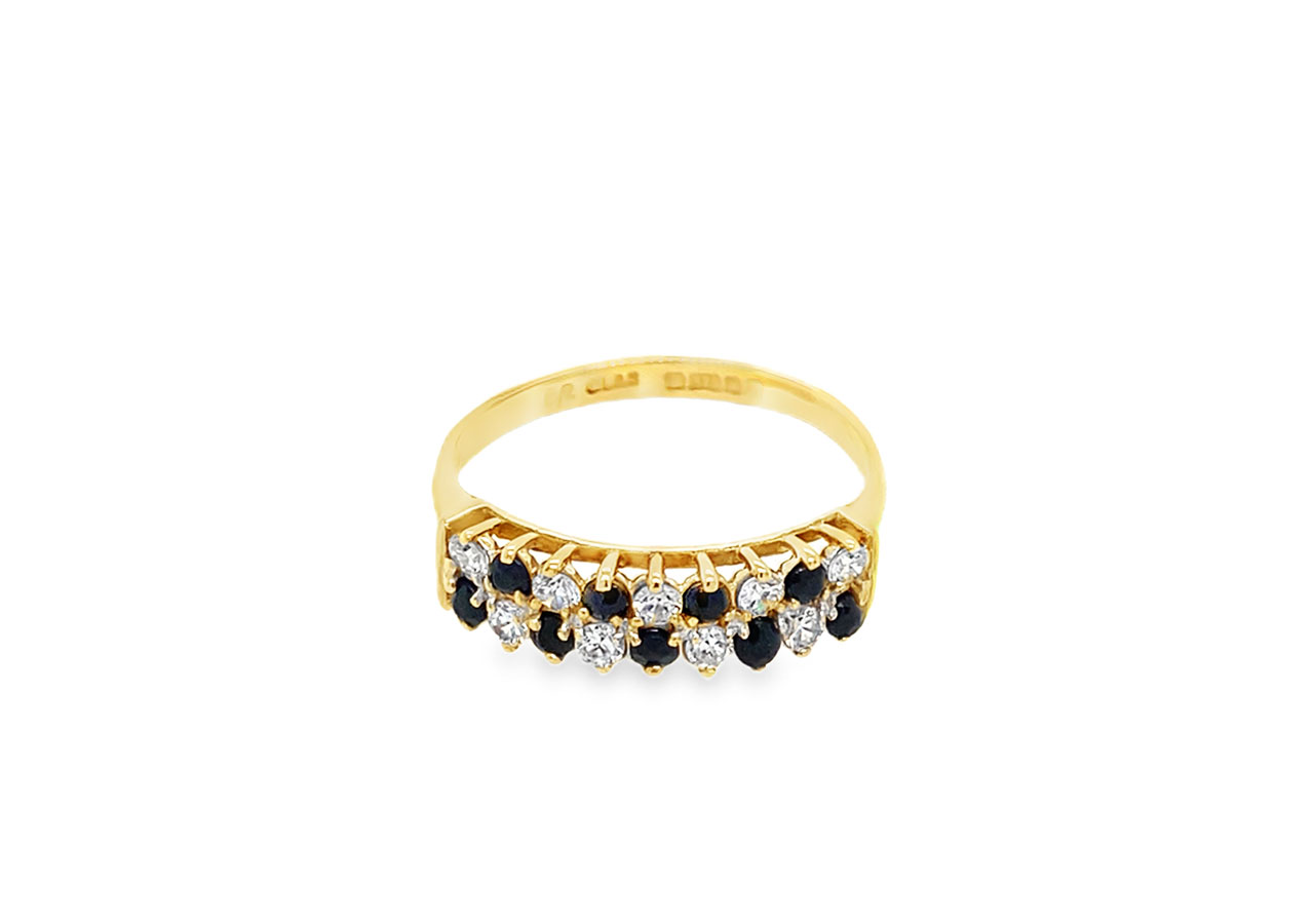 Pre-owned vintage 9ct gold ring set with round cut sapphires and cubic zirconia's in a claw setting.
