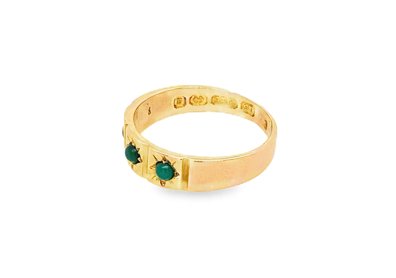 Pre-owned Antique 15ct yellow gold ring dating back to 1900 set with 3 turquiose.