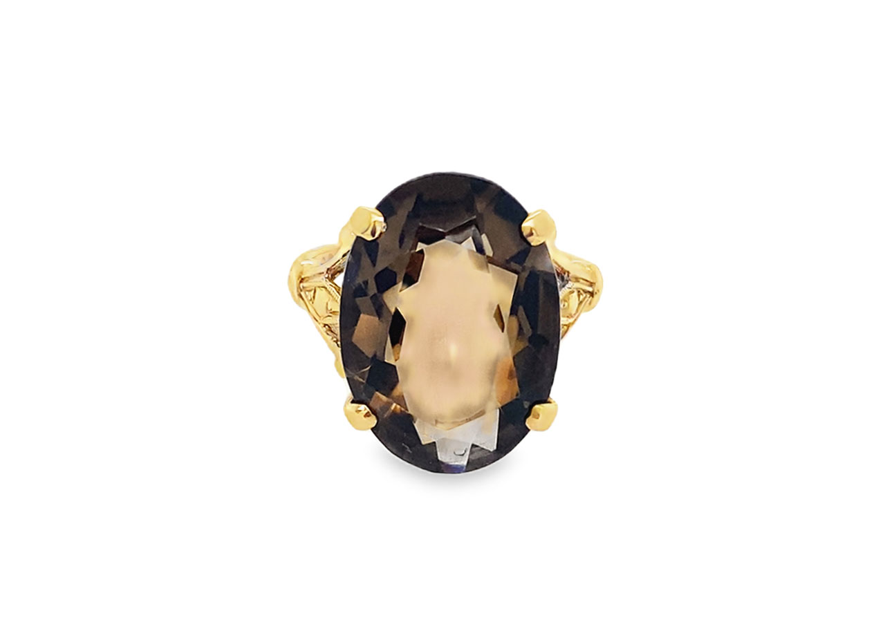 Pre-owned Vintage 9ct Gold Smoky Quartz Ring