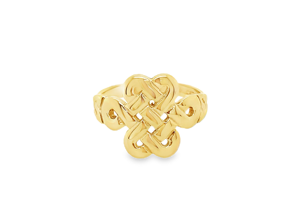Pre-owned 9ct yellow gold ring with a celtic knot design.