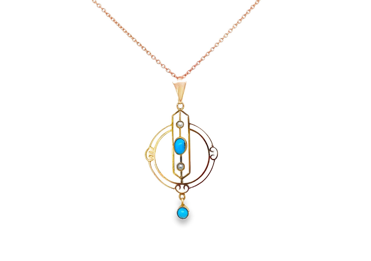 Tags: Pre-owned, Gold, Necklace, Secondhand, Pearl, Turquoise.