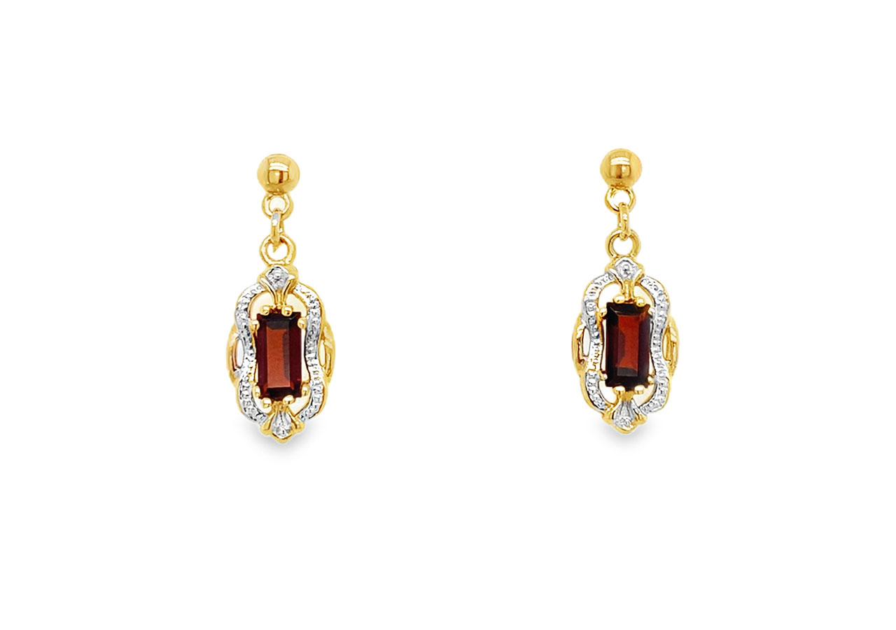 Pre-owned 9ct yellow gold fancy drop garnet earrings.