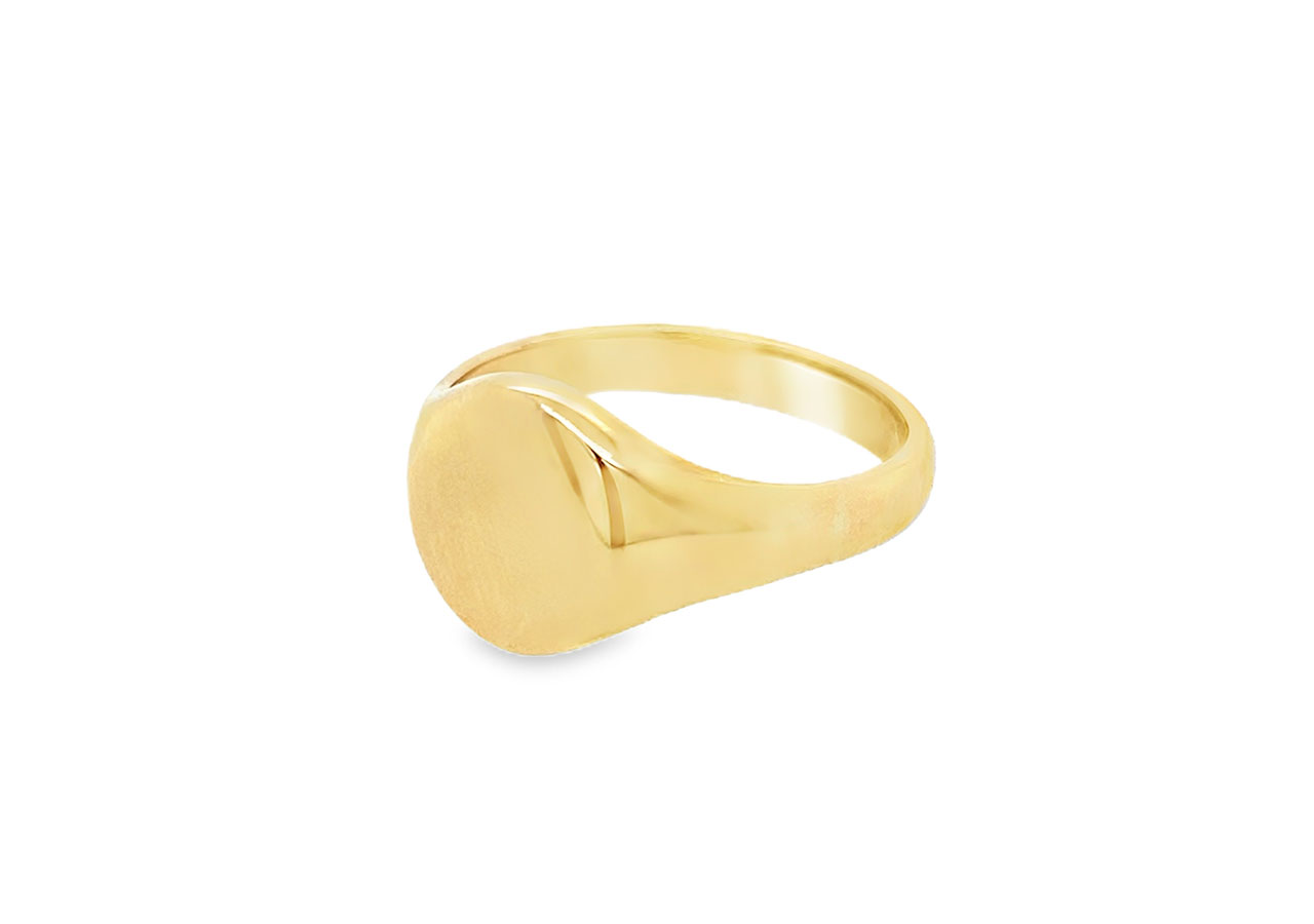 Pre-owned 9ct yellow gold plain oval signet ring.