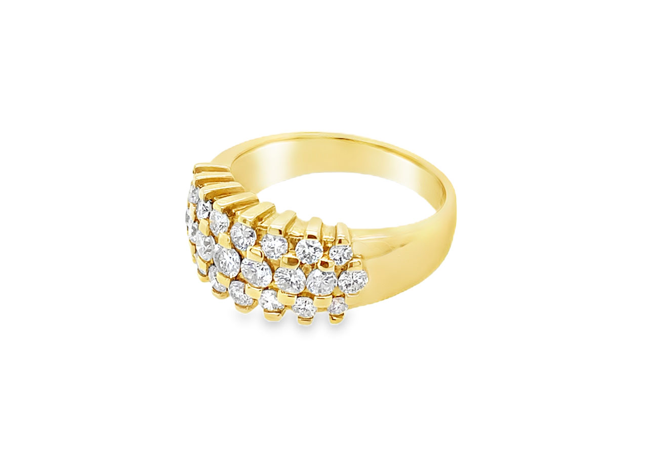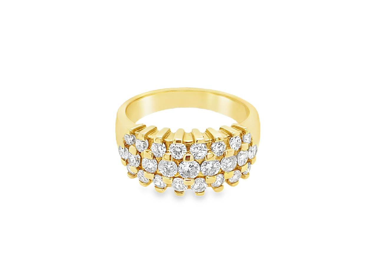 Pre-owned 18ct yellow gold ring set with a triple row of round brilliant diamonds equating to approximately 1ct.